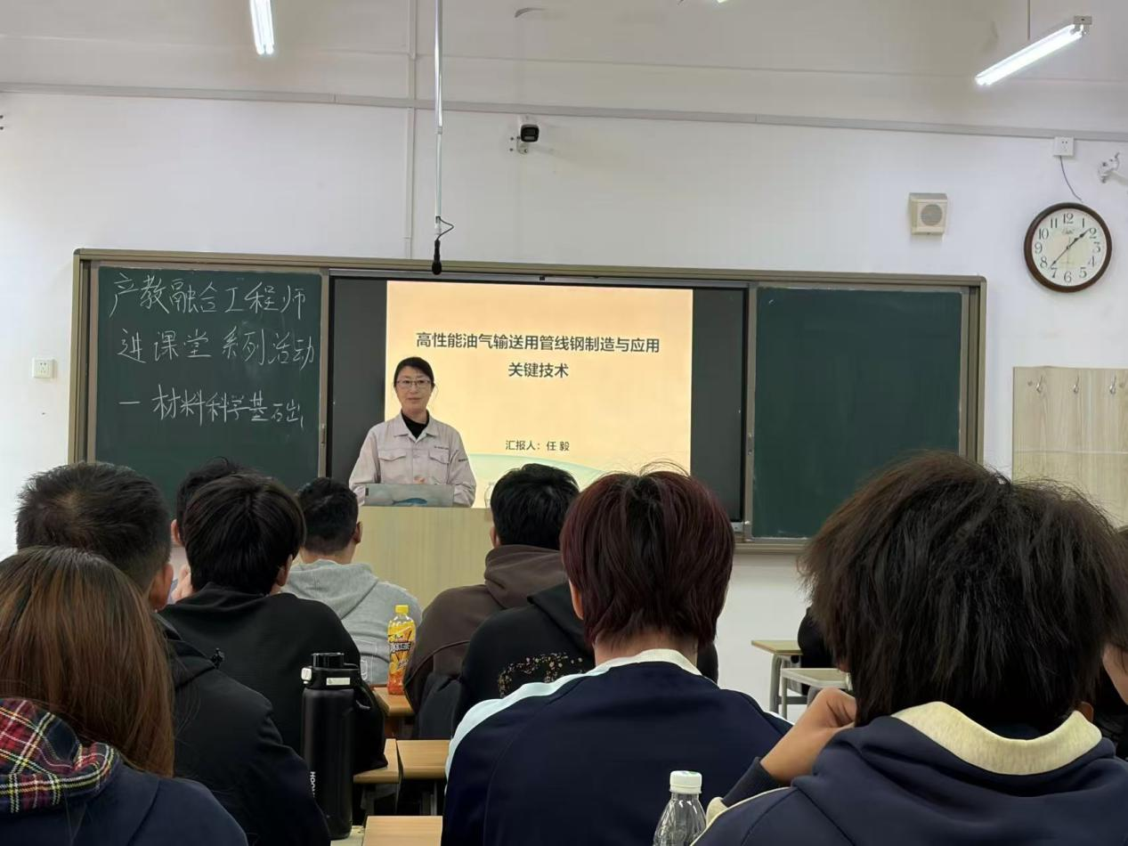为深化产教融合,打通高校人才培养与产业发展的 “最后一公里”10 22日下午13:30,材料成型及控制工程系特邀鞍山钢铁研究院教授级高级工程师任毅走进《材料科学基础》专业课课堂,以“高性能油气输送用管线钢制造与应用关键技术” 为主题,为材控20241班的本科生及相关教师带来了一场兼具理论深度与产业实践的精彩一课。本次活动不仅让本科生近距离接触行业前沿技术,更推动教师团队与企业专家的学术交流,为课程教学注入了鲜活的产业实践元素。