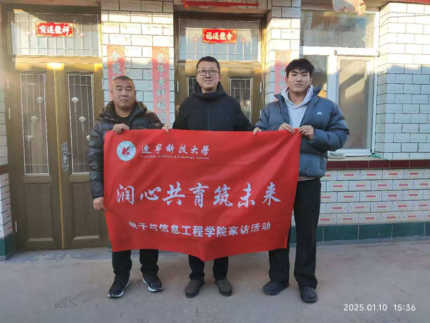 大红的喜报映着家长的张张笑脸,温暖关切的话语回荡在学生家中。2025年寒假伊始,电子与信息工程学院辅导员于家鹏开始了2025年家访工作。1月9日至11日,于家鹏先后到达朝阳市、北票市、建平县和朝阳县等地区,为5名获得国家励志奖学金、校优秀学生奖学金和学生工作骨干奖学金的学生送去喜报和荣誉证书。