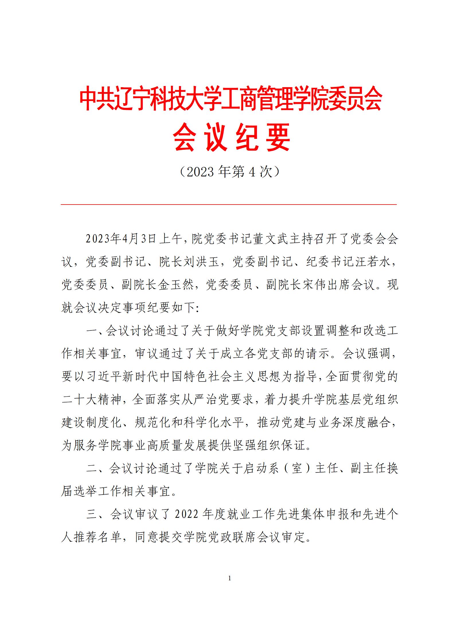 中共云鼎手机平台工商管理学院委员会会议纪要(2023年第4次)