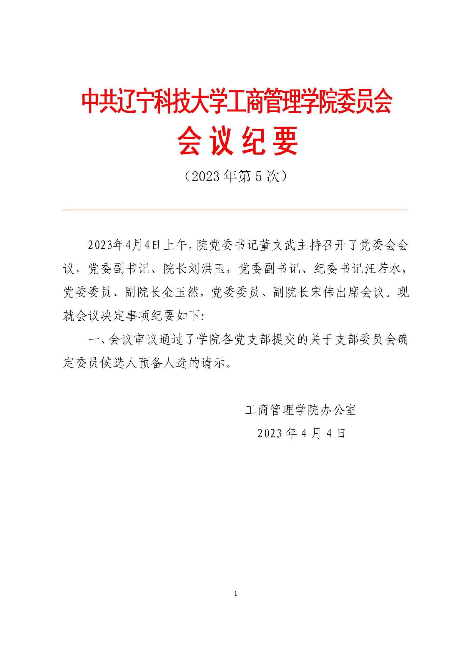 中共云鼎手机平台工商管理学院委员会会议纪要(2023年第5次)
