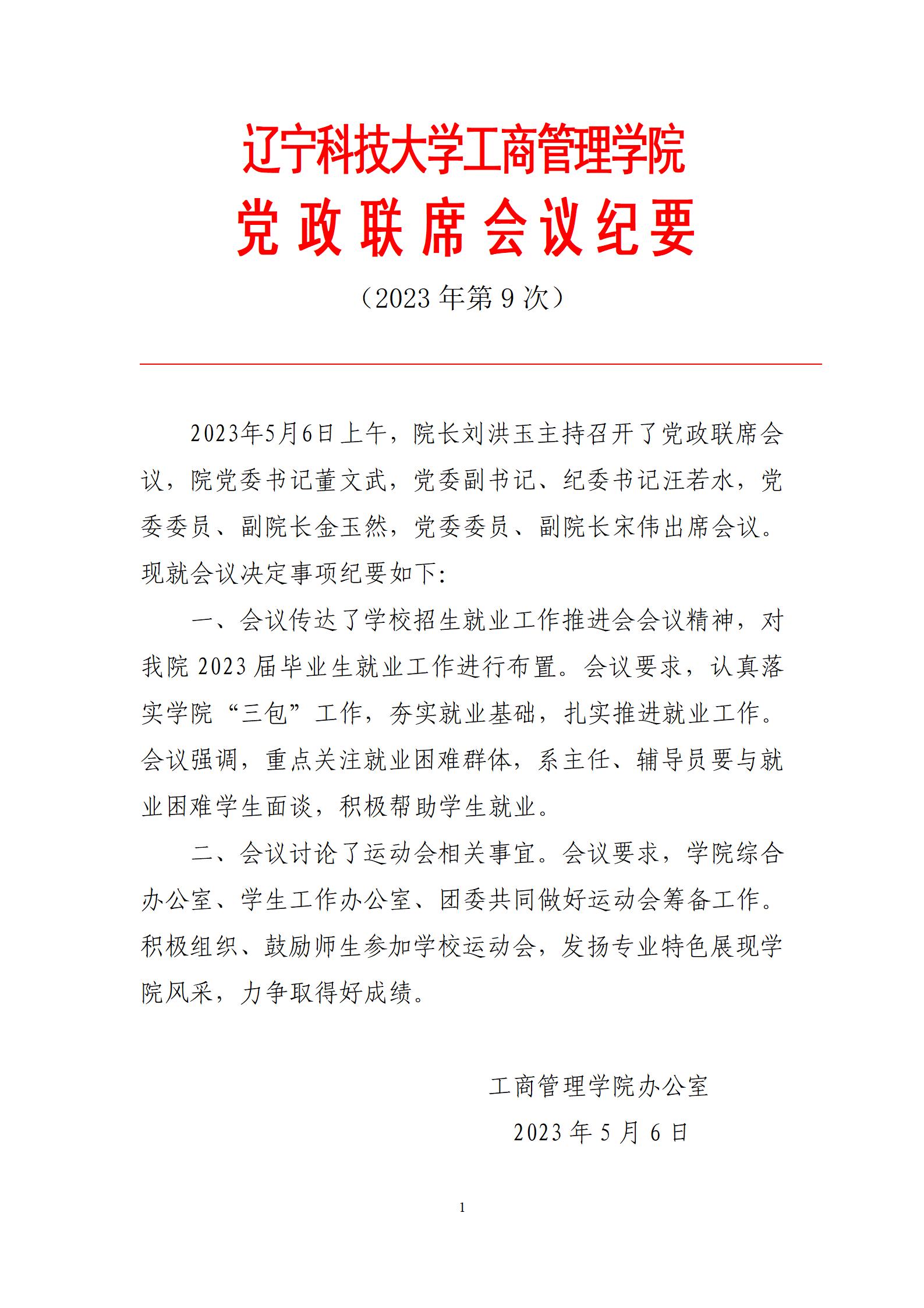 云鼎手机平台工商管理学院党政联席会议纪要(2023年第9次)