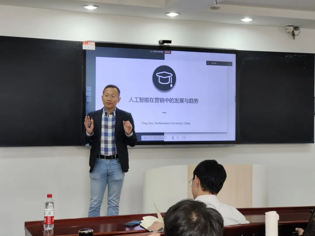 本次活动共分为两场专题报告,首场报告是由东北大学管理学院孙洋博士主讲的《人工智能在营销中的发展与趋势》。孙博士以其深厚的理论功底和丰富的实践经验,深入剖析了人工智能如何重塑营销格局,探讨了未来发展的可能性和挑战。孙洋博士在其报告中指出,人工智能在营销领域的发展经历了四个重要阶段:机械式、分析型、直觉型以及情感型。在最初阶段,即“机械式”阶段,人工智能仅能执行最基本的学习和适应任务;随后“分析型”阶段让AI能够基于数据进行系统性学习和适应;进入“直觉型”阶段,AI开始展现出基于理解的学习和适应能力;最终,在“情感型”阶段,AI将学会基于体验进行感同身受式的理解和适应,从而实现更为人性化的交互模式。他强调,随着大数据、机器学习等技术的进步,人工智能正逐渐成为驱动市场营销创新的关键因素。
