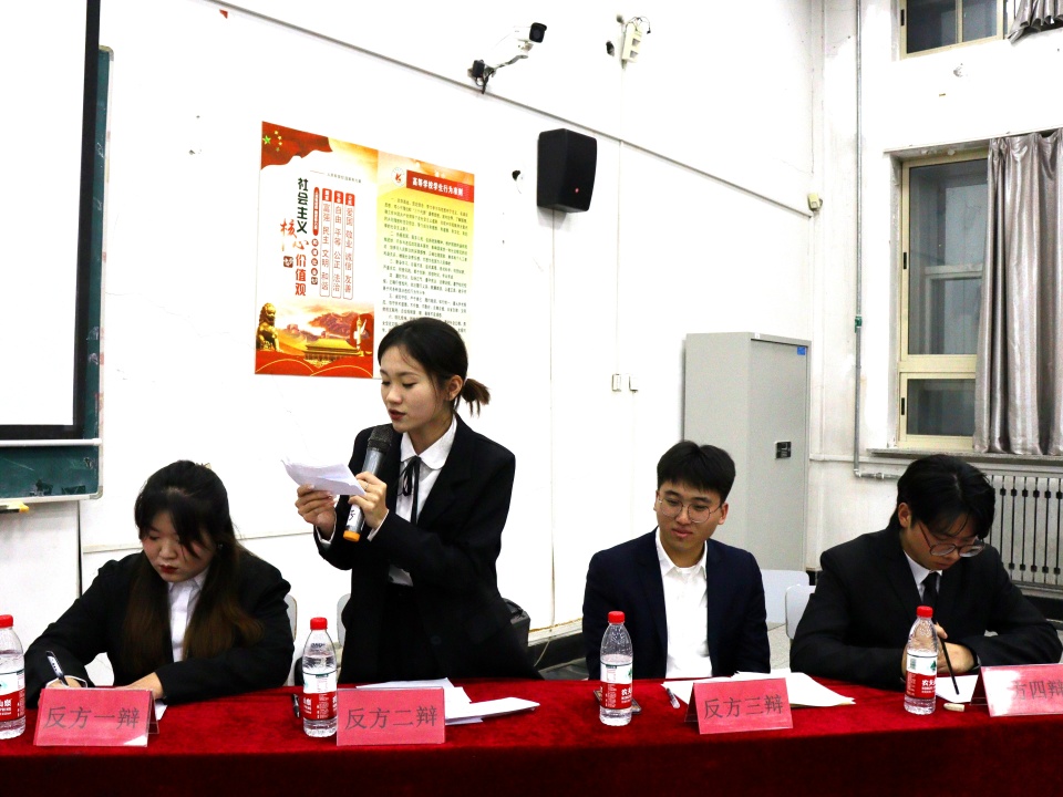 此次辩论赛不仅锻炼了同学们的思维能力,丰富了知识储备量,提高了团队合作及快速反应能力,同时也增强了同学们的自信心。在场的同学见证了辩论赛激烈的思维碰撞,也体会到了思辨的乐趣,并且在辩论过程中加深了对“辩”字的理解。希望在以后的学习生活中,同学们能够不停止思考,不怯于表达,努力提升自身能力,努力创造更加灿烂的明天!