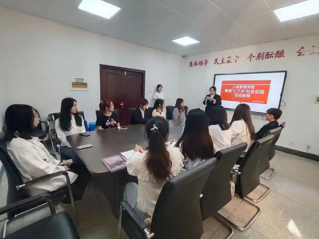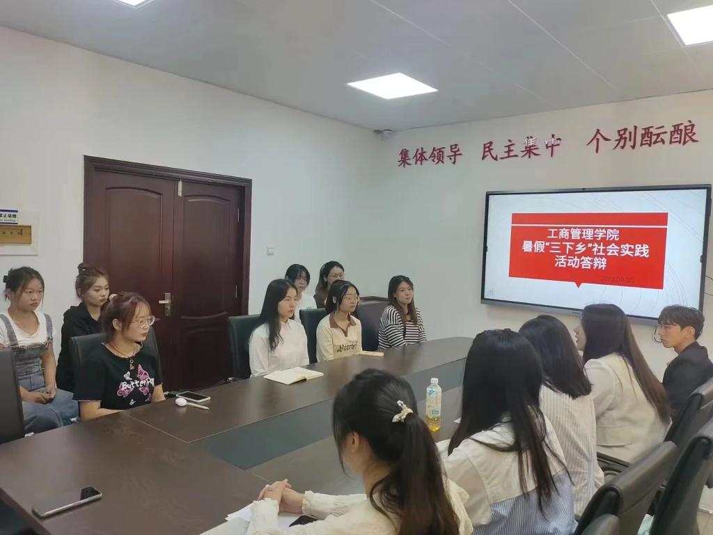 为深入贯彻党的思想,培养学生吃苦耐劳精神,检验同学们暑期实践成果。工商管理学院于9月20日在管理学院楼B407举行召开了“三下乡”社会实践答辩会。团委副书记刘宁,社团管理中心负责人蒋鑫,学生代表李本旭、姜苏展、张斓曦参会,同时也担任本次答辩会评委。会议由郝诗语主持。
