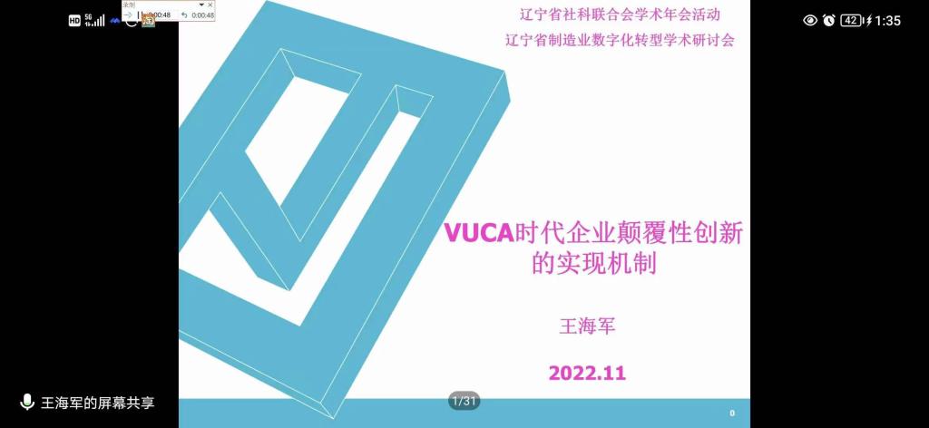 此次学术研讨会围绕贯彻落实辽宁省制造业数字化赋能的相关行动方案,深入探讨加快数字经济发展,促进数字经济和实体经济深度融合,通过数字化时代的商业模式创新、颠覆式创新以及典型应用场景提炼等机理和方法,为我省制造业数字化转型发展提供了智力支撑。
