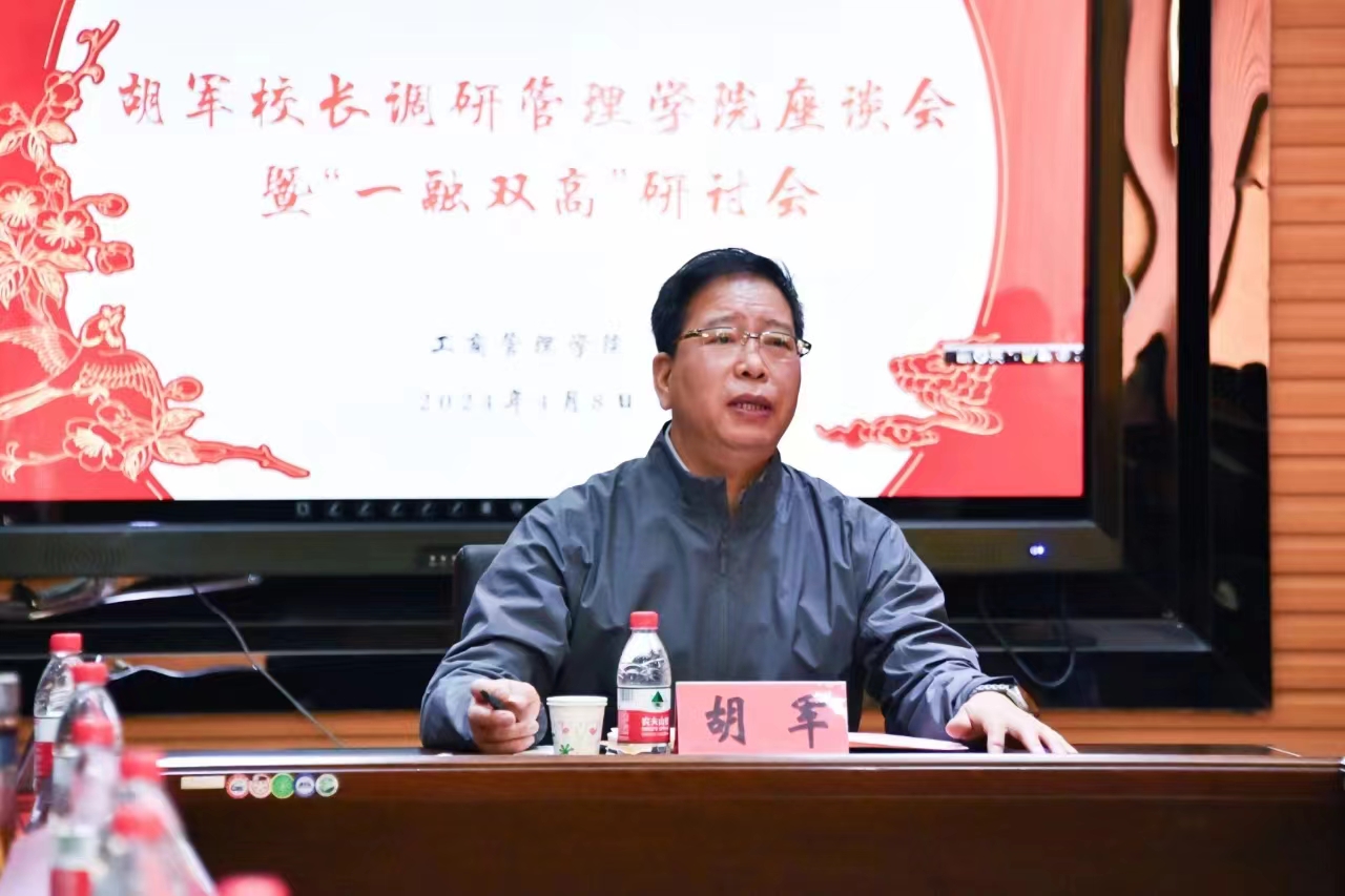 4月8日上午,云鼎手机平台工商管理学院召开“一融双高”专题研讨会。校党委副书记、校长胡军出席会议并讲话。管理学院领导班子成员、系室主任、党支部书记及科级以上干部参加研讨。