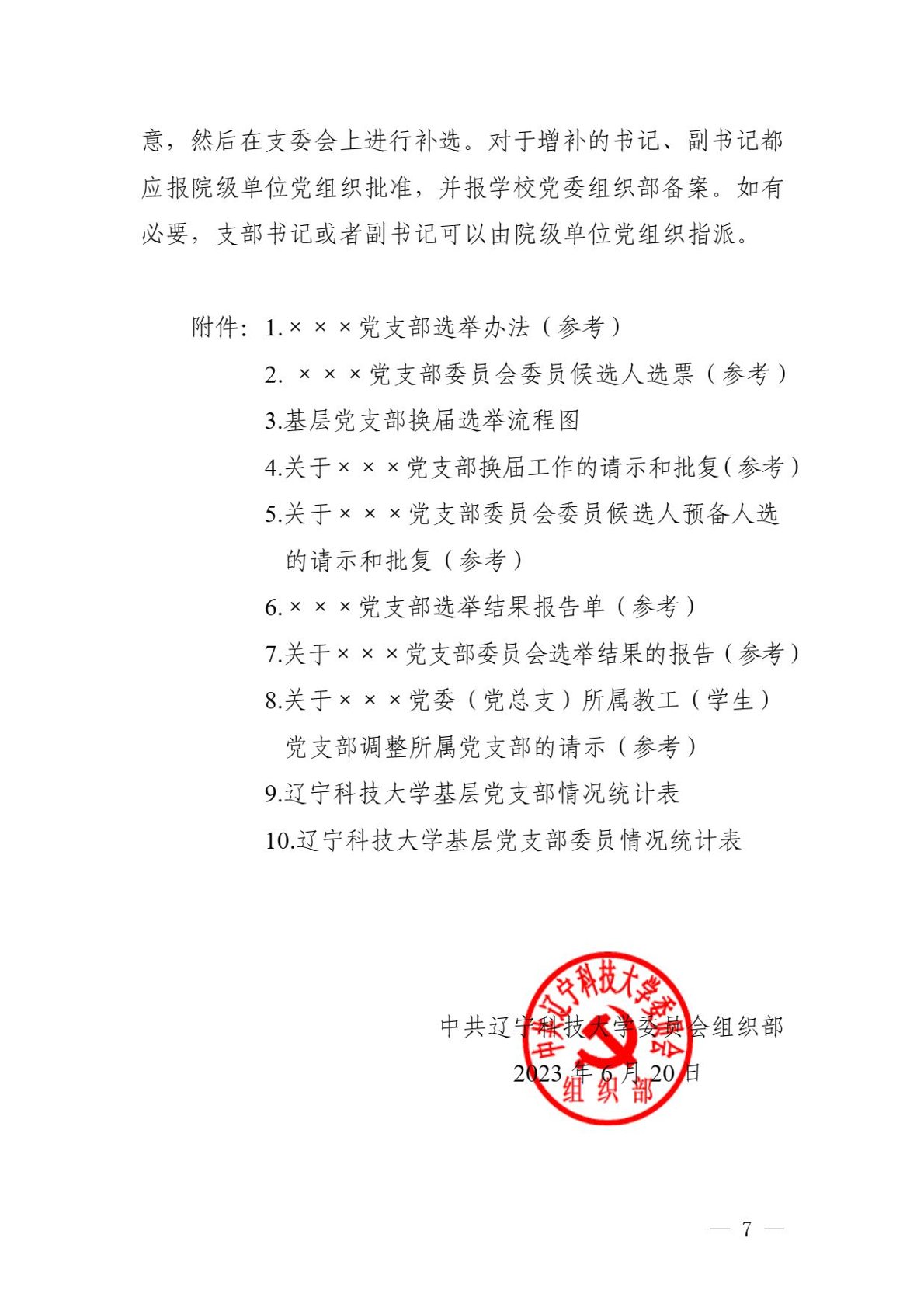 附件7:关于×××党支部委员会选举结果的报告(参考).docx