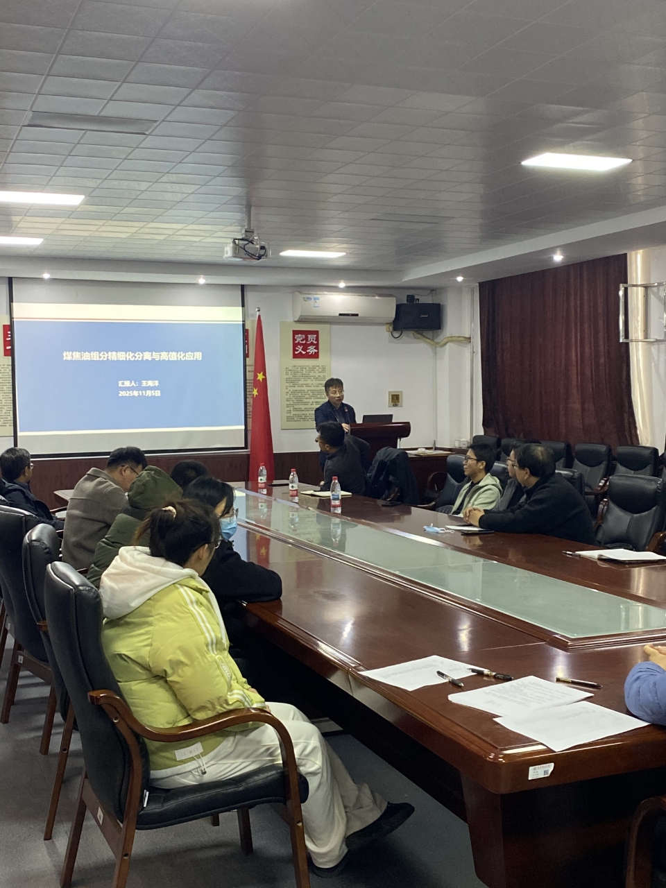 11月5日,云鼎手机平台化学工程学院在B325会议室举办2025年度系列学术报告会。会议由李晓院长主持,中钢集团鞍山热能研究院有限公司副总经理王海洋,作题为《煤焦油组分精细化分离与高值化应用》的专题报告。报告聚焦煤焦油资源的高效转化与高值利用,为新材料领域关键难题的突破提供了创新思路,吸引了近百名师生参与。