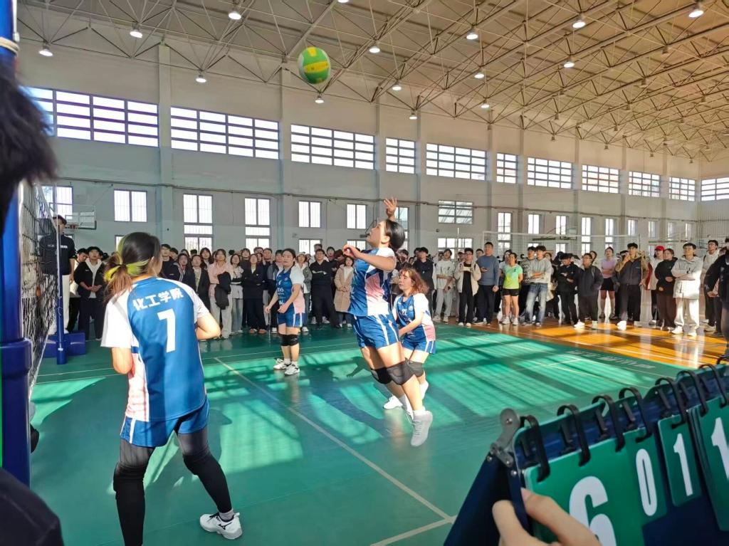 比赛伊始,化工学院队员便迅速进入竞技状态:发球迅猛刁钻、扣杀势如破竹、拦网密不透风、救球干脆利索,整套动作连贯流畅。场上队员密切配合,时而精准传球组织进攻,时而飞身扑救化解危机,每一个动作都彰显扎实功底与战术素养,每一次奋力跃起都迸发青春活力,每一声相互鼓劲都传递团队温情。面对劲敌,队员们沉着冷静、灵活调整战术,稳扎稳打掌控节奏与迅猛反击撕开防线交替上演,攻防转换间尽显团队智慧。默契的配合、顽强的防守、精彩的进攻,赢得场边观众阵阵欢呼,加油声与气排球落地声交织成热浪,将赛场氛围推向高潮。