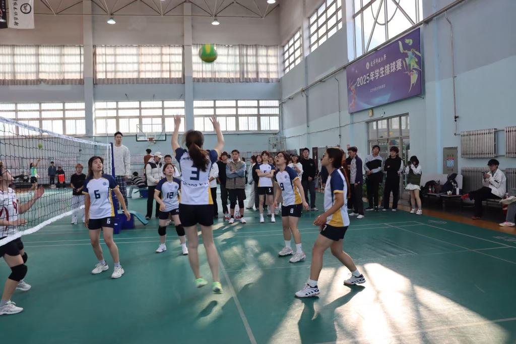比赛期间,团委书记张鹏飞老师凭借深厚的排球专业积淀,在关键时刻对比赛节奏、战术策略及对手弱点进行精准研判,为队员提供及时有效的指导。与此同时,场边同学们的热情加油与鼓励,也成为女排队伍坚定前进的强大支撑,让每一位队员都带着信念与热血全力以赴。