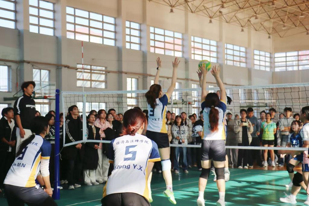 在决赛赛场,经法学院先后对阵土木学院、计算机与软件工程学院及化工学院代表队。赛局紧张激烈、比分此起彼伏。尽管数次落后,队员们仍顽强抵抗、决不言弃,在关键球上展现出过硬的心理素质与坚韧毅力。她们靠着一次次高质量的防守与精准反击向对手发起冲击,用实际行动诠释“不抛弃、不放弃”的体育精神,并赢得现场观众阵阵掌声。