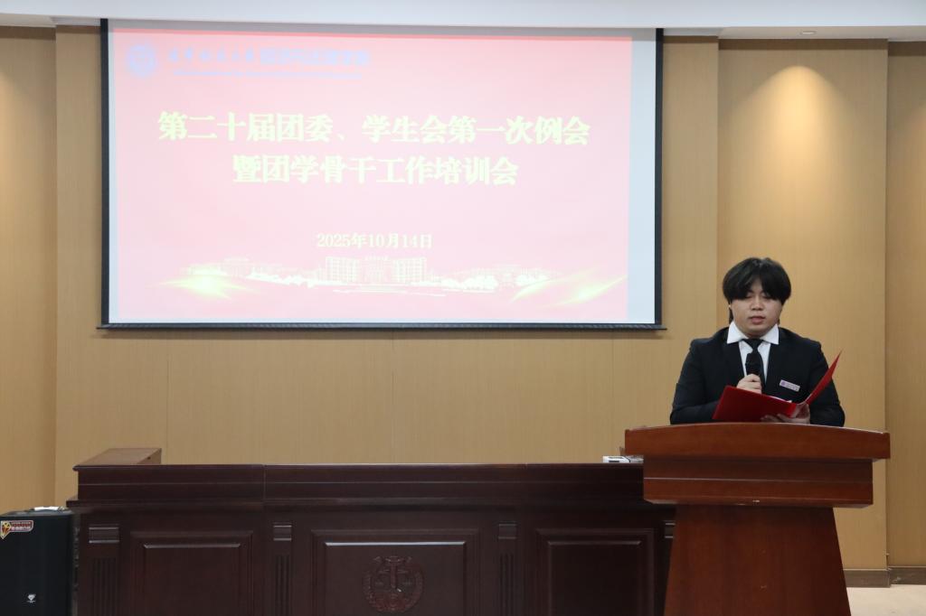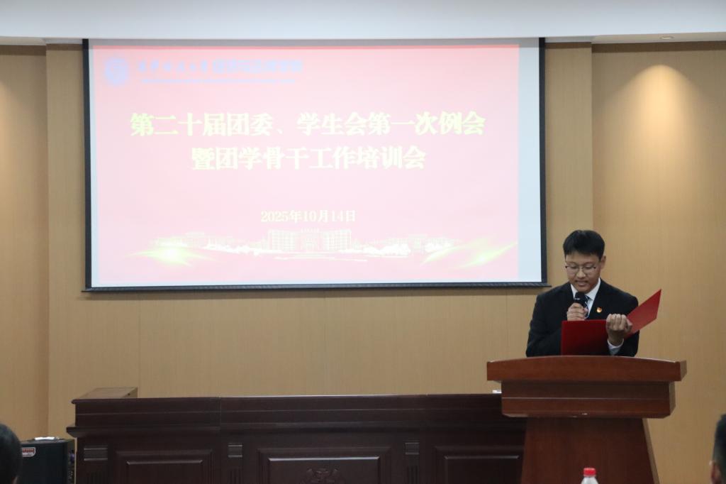 会议伊始,学生会主席团成员张珈奕宣读《经法学院学生会工作章程》,详细介绍了团委、学生会的工作职能与考核标准,并对各团学骨干的日常工作作出了规范与指导。随后,各部门负责人依次上台发言,介绍部门职责及未来工作规划。部门成员也进行了自我介绍,纷纷表示将以饱满的热情和高度的责任感投入工作,在今后的学习与实践中携手并进,共同为经法学院的发展贡献力量。