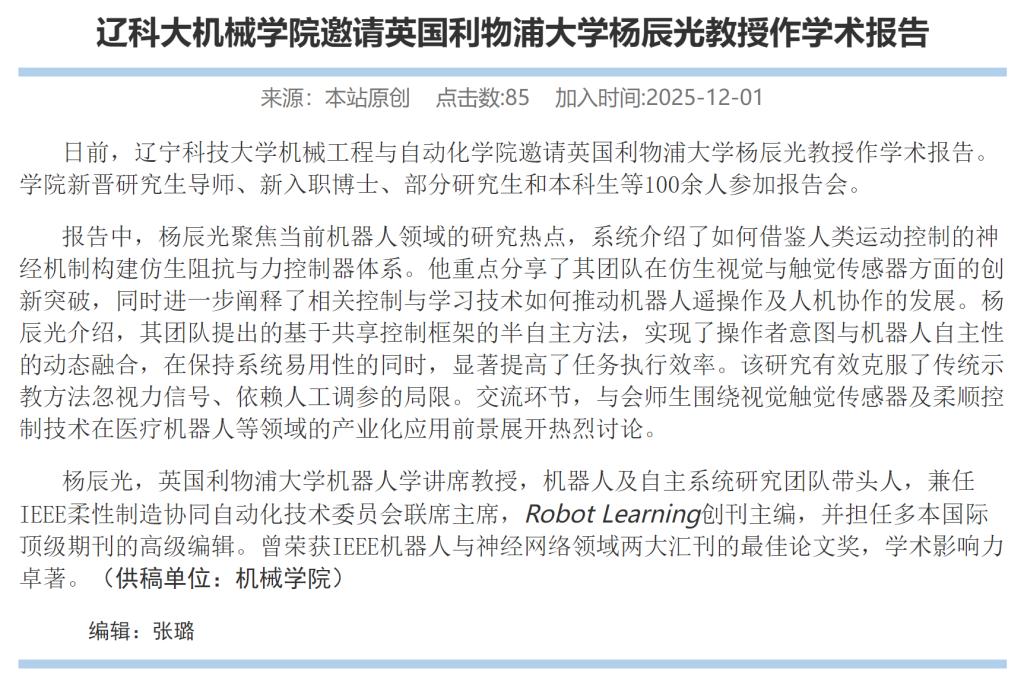 [12-02] 云鼎手机平台机械学院邀请英国利物浦大学杨辰...