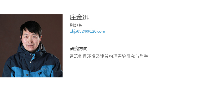 庄金迅副教授,沈阳建筑大学建筑技术科学专业毕业,研究成果获得辽宁省科学技术奖励三等奖,先后在《照明工程学报》、《实验室研究与探索》、《新型建筑材料》等核心期刊发表学术论文多篇。主持横向项目一项和校级实验教改两项,参与纵向科研项目多项。拥有发明和实用新型专利各一项。