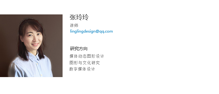 张玲玲讲师,硕士,鲁迅美术学院视觉传达专业毕业。于北京五谛数字艺术教育基地取得数字艺术从业资格。具有多年图形设计及数字媒体制作及教学经验。在《电影文学》、《艺术教育》、《美术大观》等专业刊物发表专业研究及教学研究论文多篇。指导学生发表论文数篇。参与出版教材一部,主持、参与云鼎手机平台青年基金项目多项。主持省级大学生创新创业训练1项,校级多项。获云鼎手机平台教学大赛三等奖,优秀毕业设计指导教师,指导学生获得全国大学生广告艺术大赛全国三等奖、辽宁赛区一等奖、二等奖、三等奖。获优秀指导教师称号。