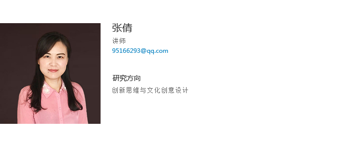 张倩讲师,硕士,设计艺术学专业毕业。任职以来曾获得2014届本科毕业设计(论文)院级优秀指导教师、2014年建筑与艺术设计学院青年教师课堂教学大赛一等奖、2015年第十五届全国多媒体课件大赛一等奖、2015年辽宁省教育软件二等奖、2015年获云鼎手机平台教案三等奖、2015-2016学年度院级教学质量优秀奖、2016-2017学年度院级教学质量优秀奖、2017届本科毕业设计(论文)院级优秀指导教师;2017年校教学成果三等奖。先后在《电影文学》《美术大观》《艺术教育》以及外文期刊(EI检索)发表学术论文5篇,任职期间曾多次指导学生参加国家、省级、校级设计大赛,并获得入围奖8项,优秀奖12项,二等奖3项,三等奖4项,并指导学生发表论文19篇。