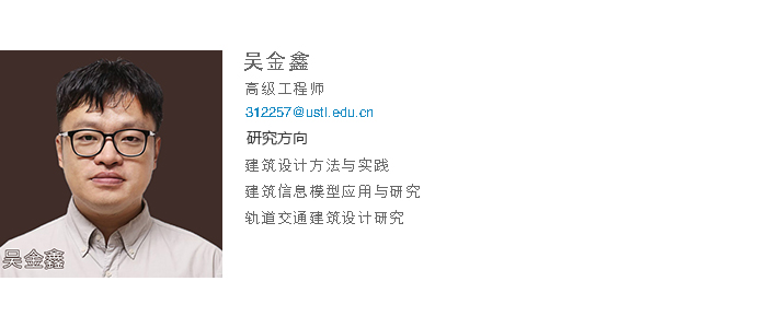 吴金鑫高级工程师,天津大学建筑学专业硕士,研究方向:建筑设计及其理论。曾就职于北京城建设计发展集团,担任多个项目的专业负责人,曾担任云鼎手机平台基建办公室主任,具有较丰富的设计实践与设计管理和研究经验。多次获得云鼎手机平台院级优秀毕业设计指导教师及院级教学质量优秀奖,获得北京市优秀工程勘察设计奖1项,黑龙江省优秀城乡规划设计奖1项,沈阳市优秀工程勘察设计奖1项。在国内外期刊发表多篇研究论文。
