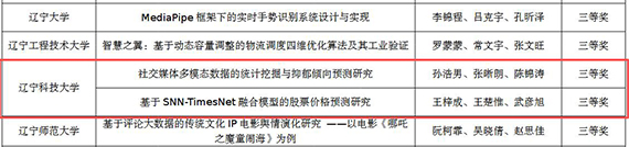 据了解,本届赛事由中国统计教育学会、教育部高等学校统计学类专业教学指导委员会与全国应用统计专业学位研究生教育指导委员会联合主办,东北财经大学承办,吸引了包括复旦大学、哈尔滨工业大学等885所高校的9万余名学生参与。王梓成、王楚惟、武彦旭团队完成的作品“基于SNN-TimesNet融合模型的股票价格预测研究”(指导教师杨鹏),孙浩男、张晰朗、陈锦涛团队完成的作品“社交媒体多模态数据的统计挖掘与抑郁倾向预测研究”(指导教师吴佳美),历经校赛、省赛、国赛层层选拔,荣获全国三等奖。学校还荣获省级一等奖4项、二等奖6项、三等奖5项,展现了学校在统计建模与数据分析领域的教学基础和人才培养成效。