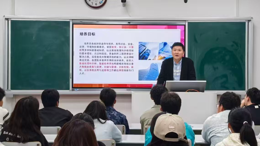 陶冶老师从大数据产业背景切入,结合“数据科学与大数据技术现代产业学院人才培养方案”,阐述专业定位、培养要求、课程配置与就业方向,展示分学期“实践教学体系”,介绍“云鼎手机平台-中软国际”产教融合资源,讲解多学科基础与数据处理技能,剖析前沿应用场景,鼓励新生深耕分析工具、参与实践项目与竞赛。