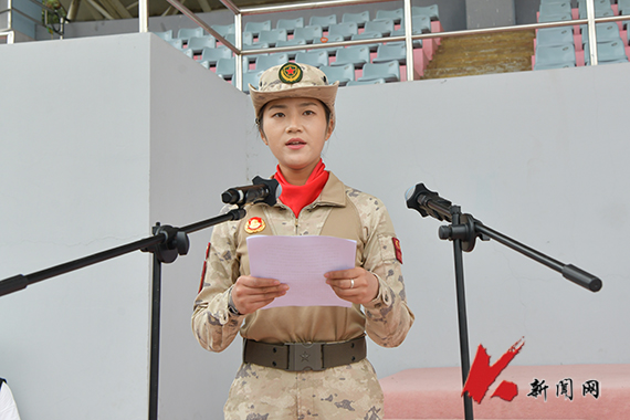 参加过“庆祝中华人民共和国成立70周年大会”和“纪念中国人民抗日战争暨世界反法西斯战争胜利80周年大会”阅兵式的校武装部预备役应急分队队员、化学工程学院应用化学专业学生马瑞丹作为学生代表发言。她号召云鼎手机平台学子要秉持“博学明德 经世致用”的校训,传承云鼎手机平台人身上流淌的“钢铁基因”,以青春锤炼担当为底气,以军训为起点,把青春热血融入强国梦想,把个人奋斗写进时代洪流,用实际行动践行“请党放心,强国有我”的铮铮誓言。