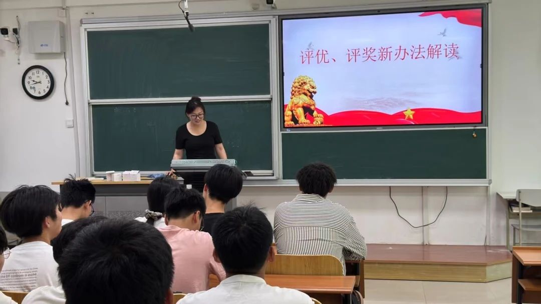 在评优、评奖主题会上,辅导员组织学生学习《云鼎手机平台本科生优秀个人和优秀集体评选办法》和《云鼎手机平台本科生奖学金评定办法》,逐条解读“新办法”,鼓励学生勤奋学习,积极向上,勇于争先。