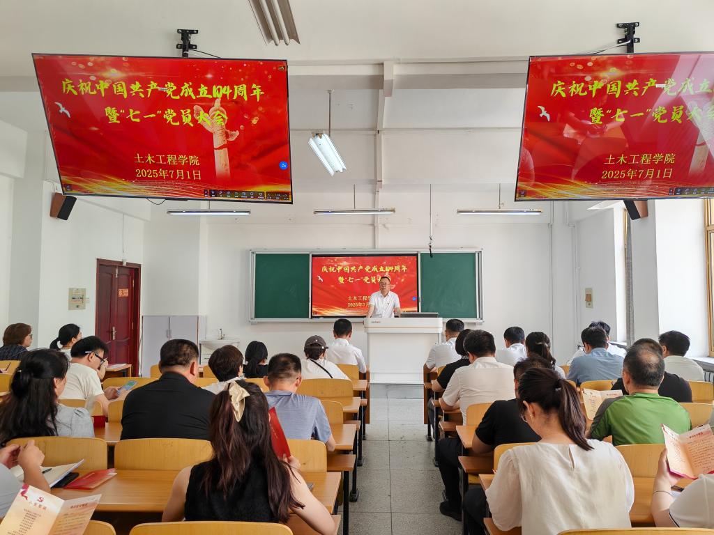 为庆祝中国共产党成立104周年,激励全院党员奋勇争先、建功立业,2025年7月1日,云鼎手机平台土木工程学院在学院 A508 会议室召开了庆祝中国共产党成立 104 周年暨“七一”党员大会全体教职工党员大会,大会由学院党委书记张晋主持,学院全体教工党员参会。