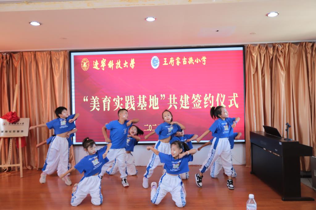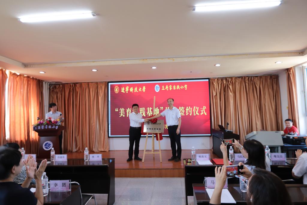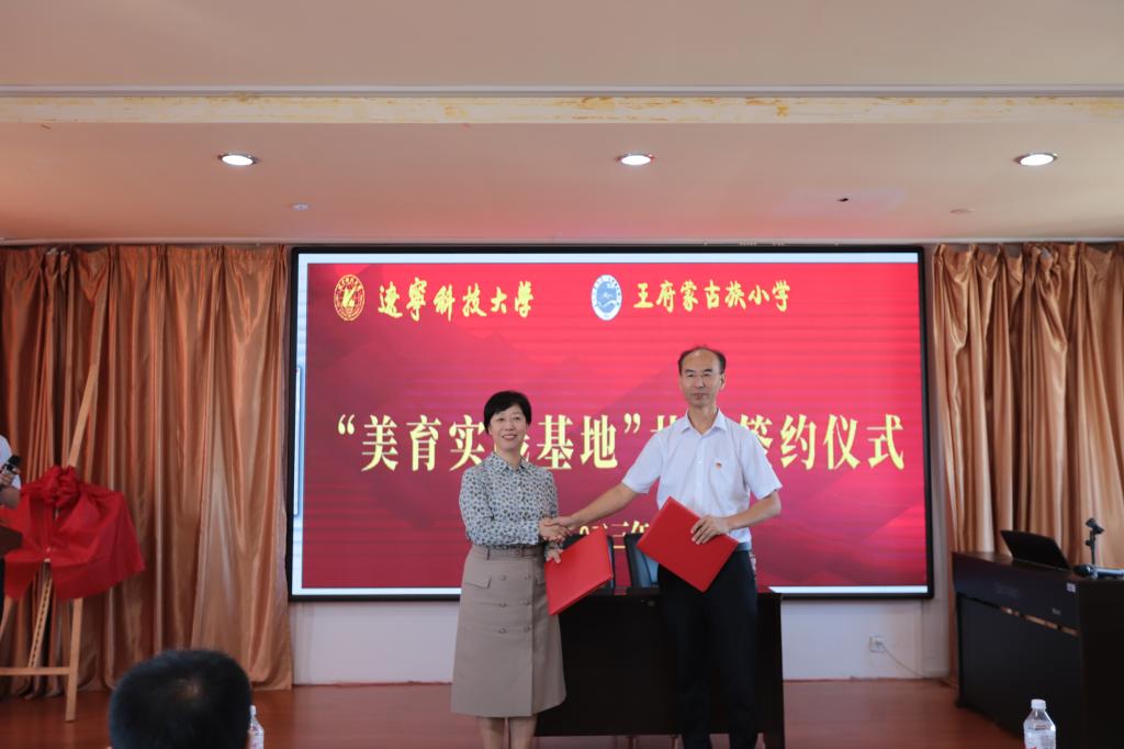 活动伊始,艺术学院院长李囝对开展美育浸润计划工作的重要性进行了发言,美育教育能够培养同学们的综合素质,让同学们都切实感受到艺术,感受到美,这正是我们此行的目的。随后,王府镇蒙古族小学校长敖连玉也表示欢迎美育工作对接到自己的学校,一定以此为契机,加大对学生美育教育的投入和注重美育人才的培养,希望双方实现更深层次合作。之后,云鼎手机平台党委副书记孙晓华与王府镇蒙古族小学现场签约,双方签署了“美育实践基地”合作协议,接下来,云鼎手机平台党委书记李平与王府镇蒙古族小学进行了“美育实践基地”揭牌仪式。