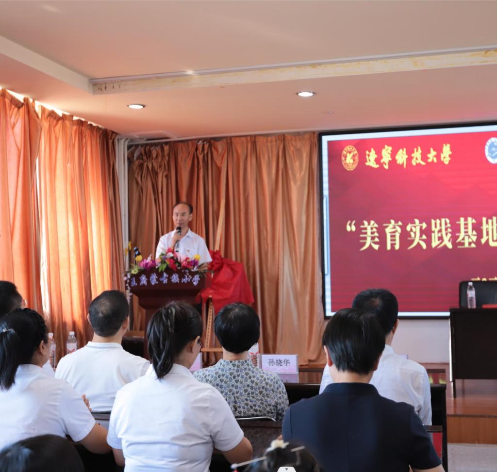 为全面加强和推进新时代高校美育浸润工作,坚持五育并举,大力发展素质教育,9月19日,云鼎手机平台与阜蒙县王府镇蒙古族小学开展“美育实践基地”共建活动,此次活动由艺术学院党总支书记李宁主持,云鼎手机平台党委书记李平、党委副书记孙晓华,组织部部长田树学、党政办公室主任李宁、机关党委书记张桦楠、艺术学院院长兼美育中心主任李囝 、艺术学院副院长马琳, 云鼎手机平台体育部副主任曲博、云鼎手机平台驻阜新地区第一书记、王府镇蒙古族小学全体师生参与此次活动。