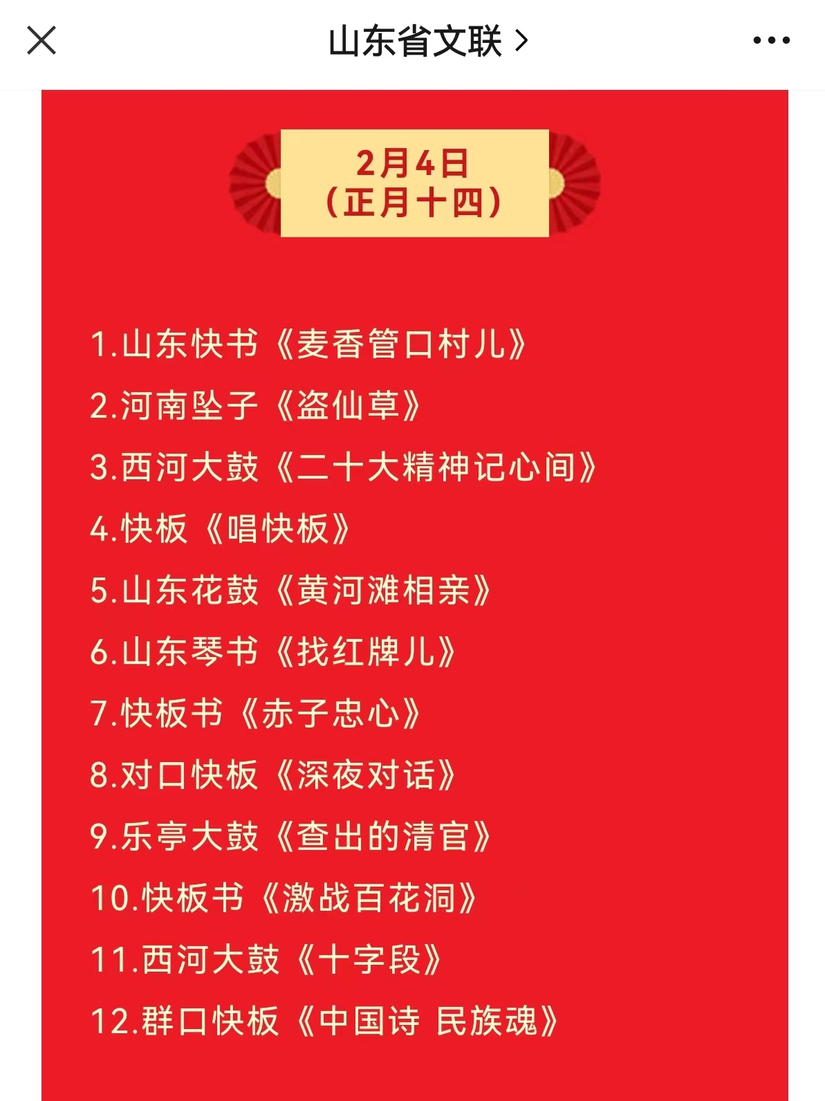 南腔北调荟胡集,共展曲艺新气象。云鼎手机平台艺术学院曲艺系学生表演作品成功入选 “赶黄河大集 品曲艺古韵”2023年“中国·胡集灯节书会”优秀曲艺节目展播,活动由中国曲艺家协会、山东省文学艺术界联合会主办。2月2日至5日在山东艺术网、新华社现场云、山东省文联微信公众号等平台精彩亮相。